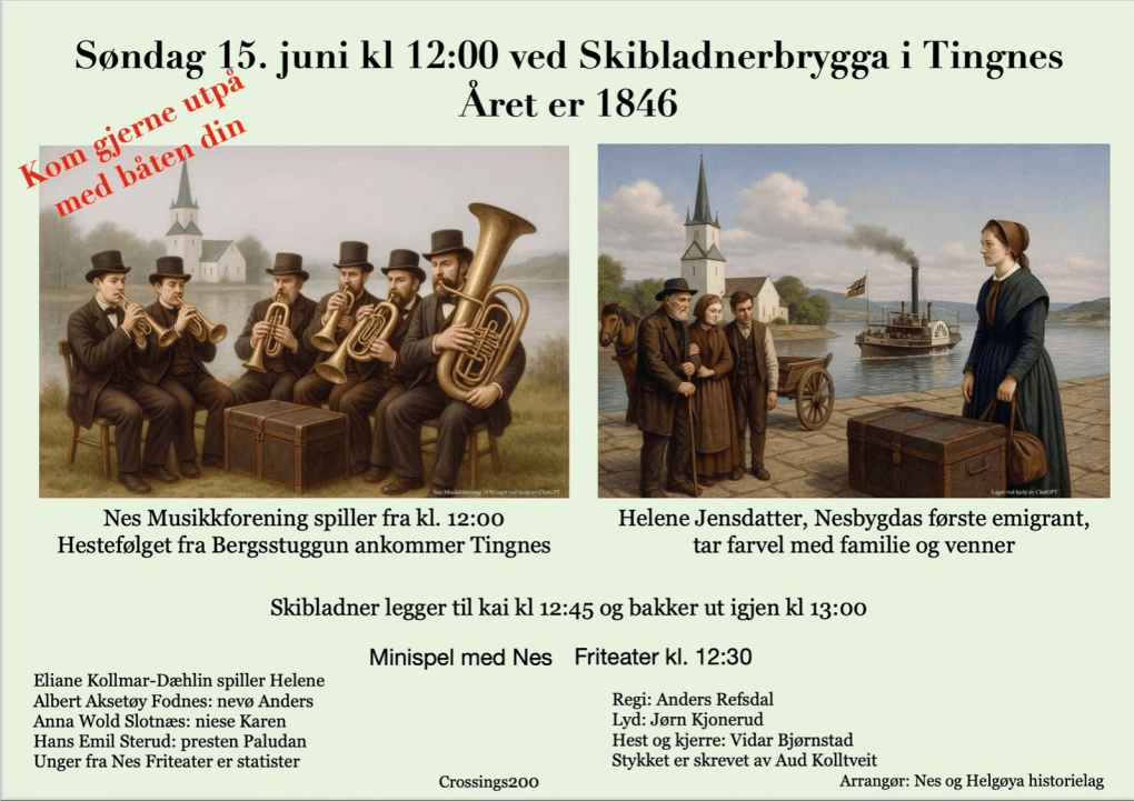 Som del av Crossings200 markerer også Nes og Helgøya historielag at det var 200 år siden utvandringen fra Norge begynte.